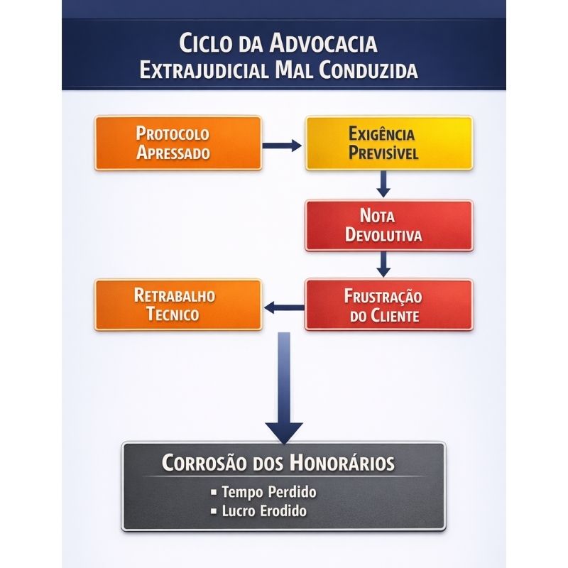 Cada exigência gera prazo. Cada prazo gera ansiedade no cliente. Cada retrabalho consome horas que não são remuneradas. O advogado passa a operar no prejuízo, ainda que não perceba de imediato. Pior – o cliente passa a desconfiar da condução técnica do caso, pois não entende por que algo que parecia simples se tornou um labirinto de idas e vindas.