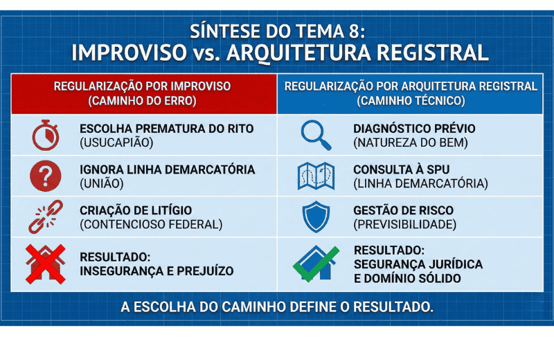 É nesse ponto que a tese se completa. Não como alerta retórico, mas como critério técnico de atuação. Quem entende isso não sai para regularizar um imóvel privado e volta discutindo com a União. Simplesmente porque jamais teria escolhido esse caminho.