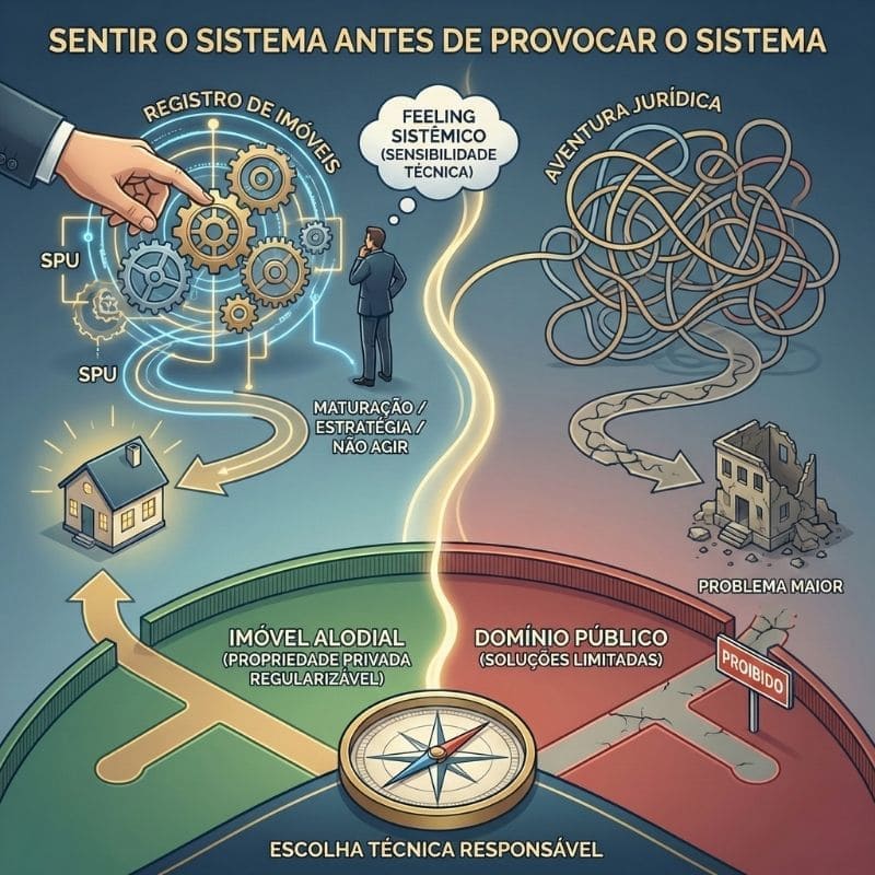 O advogado que ignora isso entrega soluções aparentes. Resolve um problema imediato e cria dois maiores. Regulariza parcialmente, mas expõe o cliente a cobranças futuras, taxas, litígios administrativos e insegurança permanente. O cliente não quer isso. Ele quer previsibilidade, estabilidade e domínio seguro. E o sistema só entrega isso quando a natureza do imóvel permite.